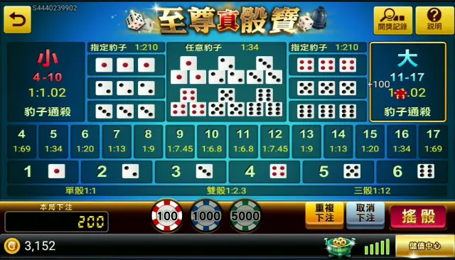 三骰同号:三颗骰子点数全一样?难度高,奖金也高。